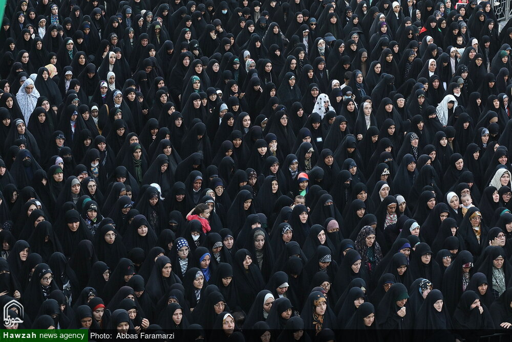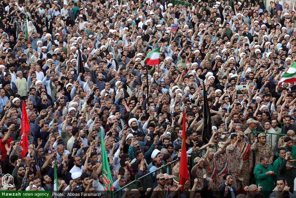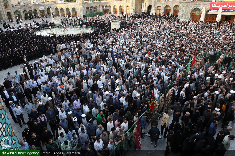 Thousands of mourners participated in the ceremony, which began at Quds Mosalla and concluded at the holy shrine of Hazrat Fatemeh Masoumeh (PBUH). The emotional event was marked by chants of solidarity, expressions of grief, and vows of continued resistance.