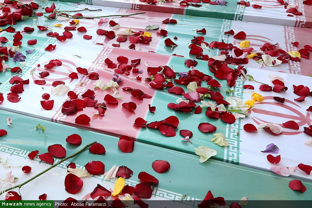 Hawzah News Agency – Qom, Iran- A solemn and magnificent funeral procession was held in Qom today for the martyrs of the recent terrorist attack carried out by the Zionist regime.