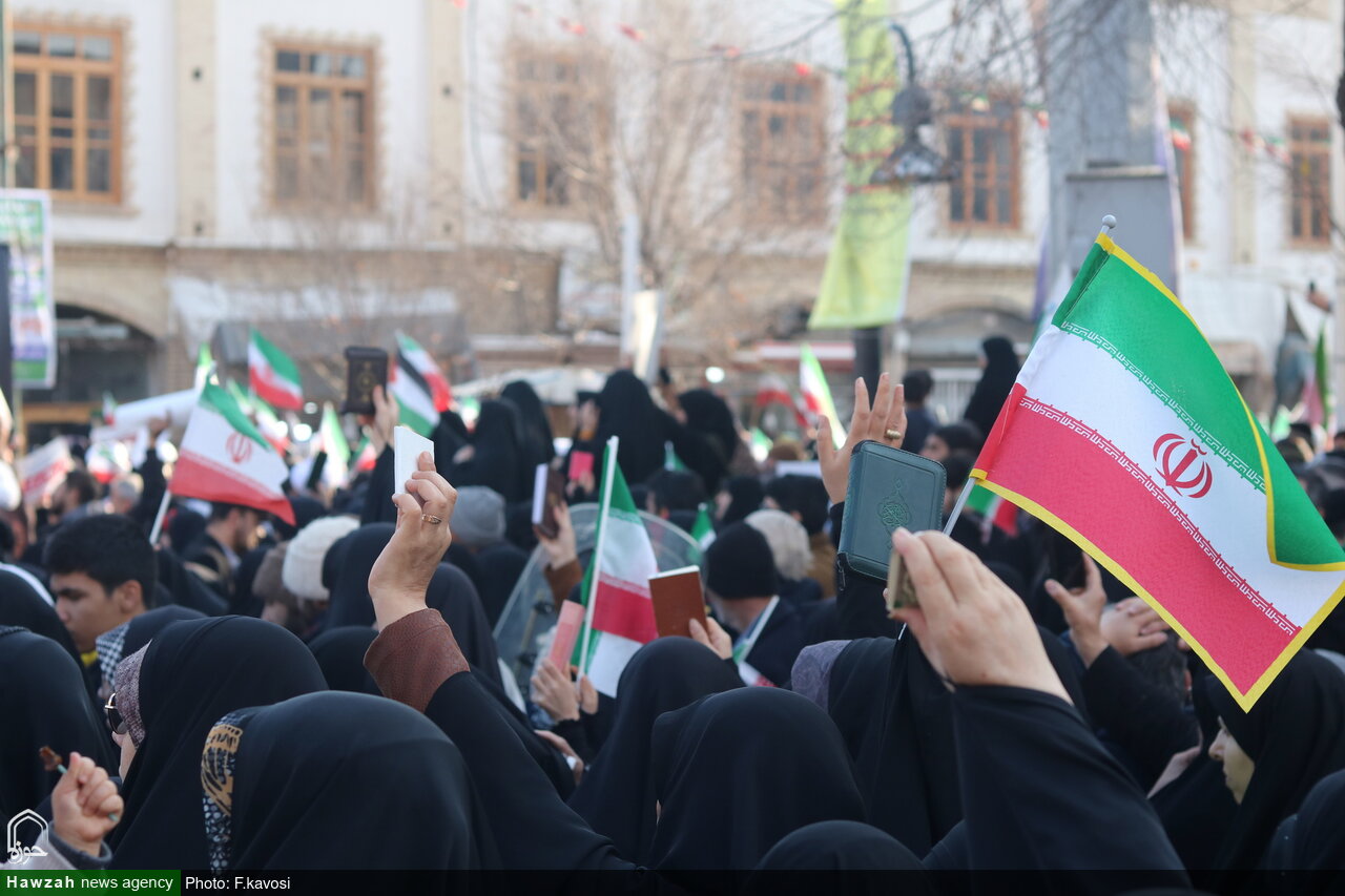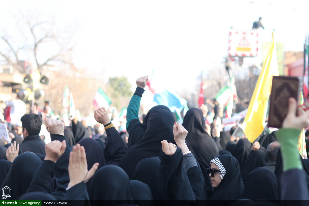 The revolutionary and loyal people of Qom; the city of the Ahl al-Bayt, took to the streets on Tuesday to condemn the American-Zionist conspiracy and express their anger and disgust at the crimes of rioters and those who threaten people's security.